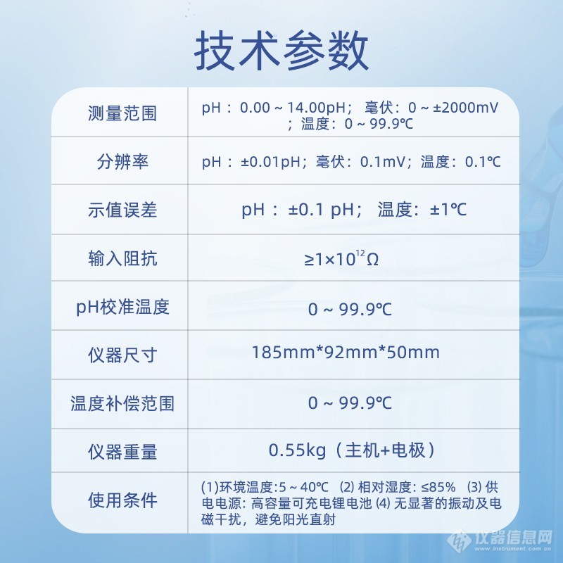 8. 电极:E201-C塑壳pH复合电极及温度电极
