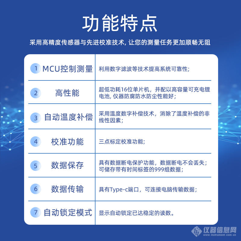 4. 自动温度补偿,并采用温度数字补偿技术,消除了温度补偿的非线性因素。